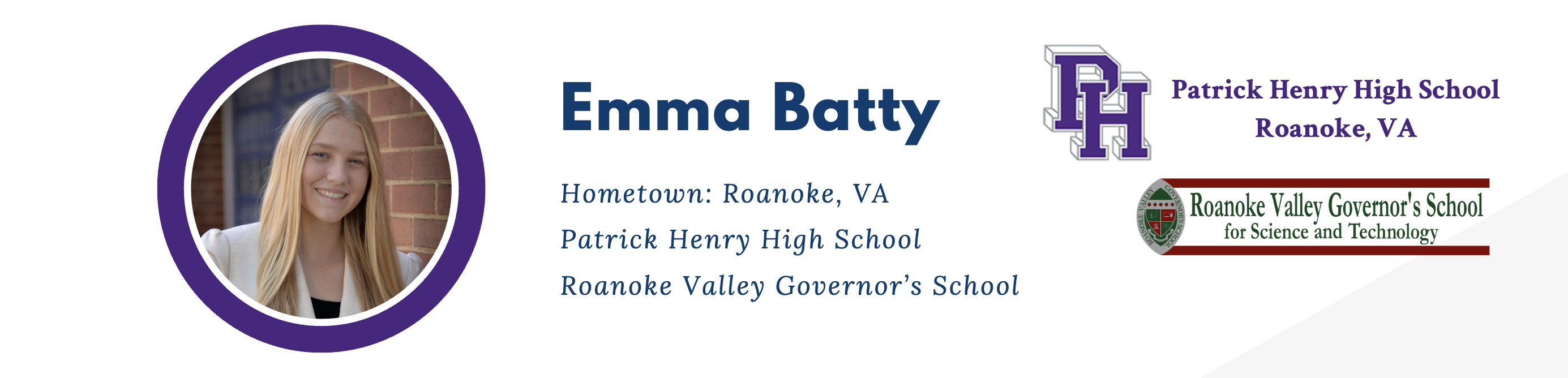 What high school courses do you feel helped you? I feel like being at the Roanoke Valley Governor’s School has helped me a lot as the classes are very rigorous and all of the teachers are very supportive. The specific classes that I have taken there that I would say helped me the most were biology and chemistry, as well as all of the research electives I have taken there (specifically microbiology and biotechnology). I would also say that my sports medicine class through the Roanoke Technical Education Center (ROTEC) that I took at Patrick Henry High School was also very helpful.